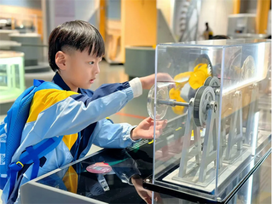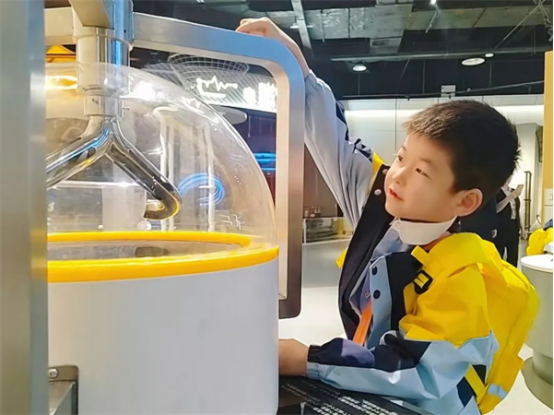 “原来太阳也可以发电啊,我们家也要装一个太阳能板!”能量展厅让孩子们大开眼界,他们了解到了各种能量是如何转换的,比如太阳能可以变成电能,给家里的电灯和电视供电。这些知识虽然复杂,但是通过游戏和实验,孩子们开始对这些抽象的概念有了初步的理解。