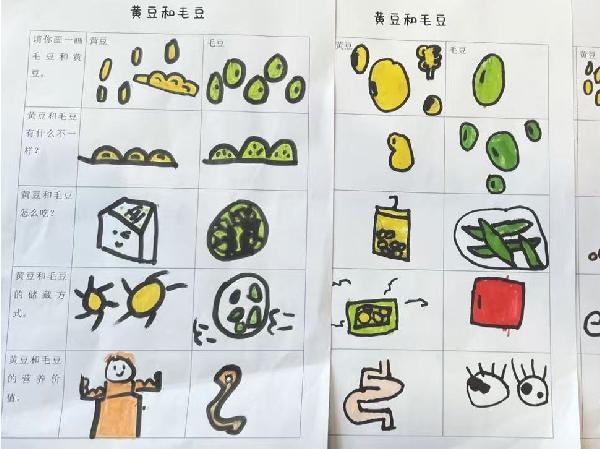 为了更好地推进活动,教师精心设计了调查表,为家长和幼儿在探索过程中提供了清晰的指引,帮助幼儿通过观察和触摸等直观方式,感受不同豆豆之间的差异,从而激发他们的兴趣和好奇心。针对幼儿们普遍不太喜欢的黄豆,教师利用表格引导他们进行深入思考,进一步观察和认识黄豆。在活动中,教师鼓励幼儿勇敢提问,并自信地分享自己的观察和发现,以此锻炼幼儿的观察能力和语言表达能力,同时也极大地丰富了他们的认知经验。