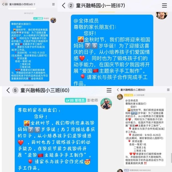 在本次迎国庆亲子作品展中,我们欣喜地看到了家庭与幼儿园、家长与孩子之间深度互动的生动实践。每一幅作品都是无声的语言,孩子们用稚嫩的双手为祖国妈妈奉上自己的祝福。我们相信一颗颗爱国的种子已在孩子们幼小的心灵中悄然种下,必将伴随着他们的成长愈发浓烈。祝福伟大的祖国妈妈生日快乐,永远繁荣富强!
