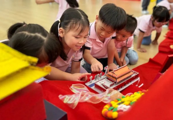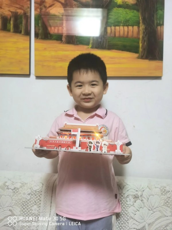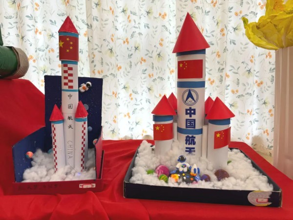 每个孩子都是艺术家。孩子的眼神是清澈的,万物入目皆有情,孩子的想象是诗意的,山水草木皆有趣,孩子的小手是灵巧的,件件作品皆有味。一件件精致的手工艺品,在家长与孩子们灵巧的手指尖逐一绽放出夺目的光彩,如天安门、长城、航天火箭等诸多元素栩栩如生。