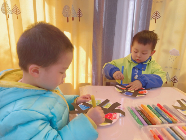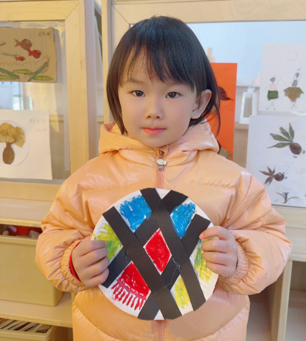 小朋友们在欣赏和探索过格子画之后,迫不及待地要自己动手在蛋糕盘上用黑色线创作出他们心中所想的格子啦!