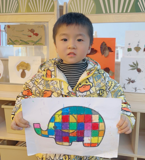 通过蒙德里安的作品欣赏活动,小朋友们第一次感受到了蒙德里安的艺术风格,并尝试用自己的小手进行格子画涂鸦创作!