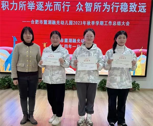 庐阳学前教育集团麓湖融光园:李思雨 刁莹 郑飞老师 在2023年秋季学期环境创设评选活动中,荣获一等奖
